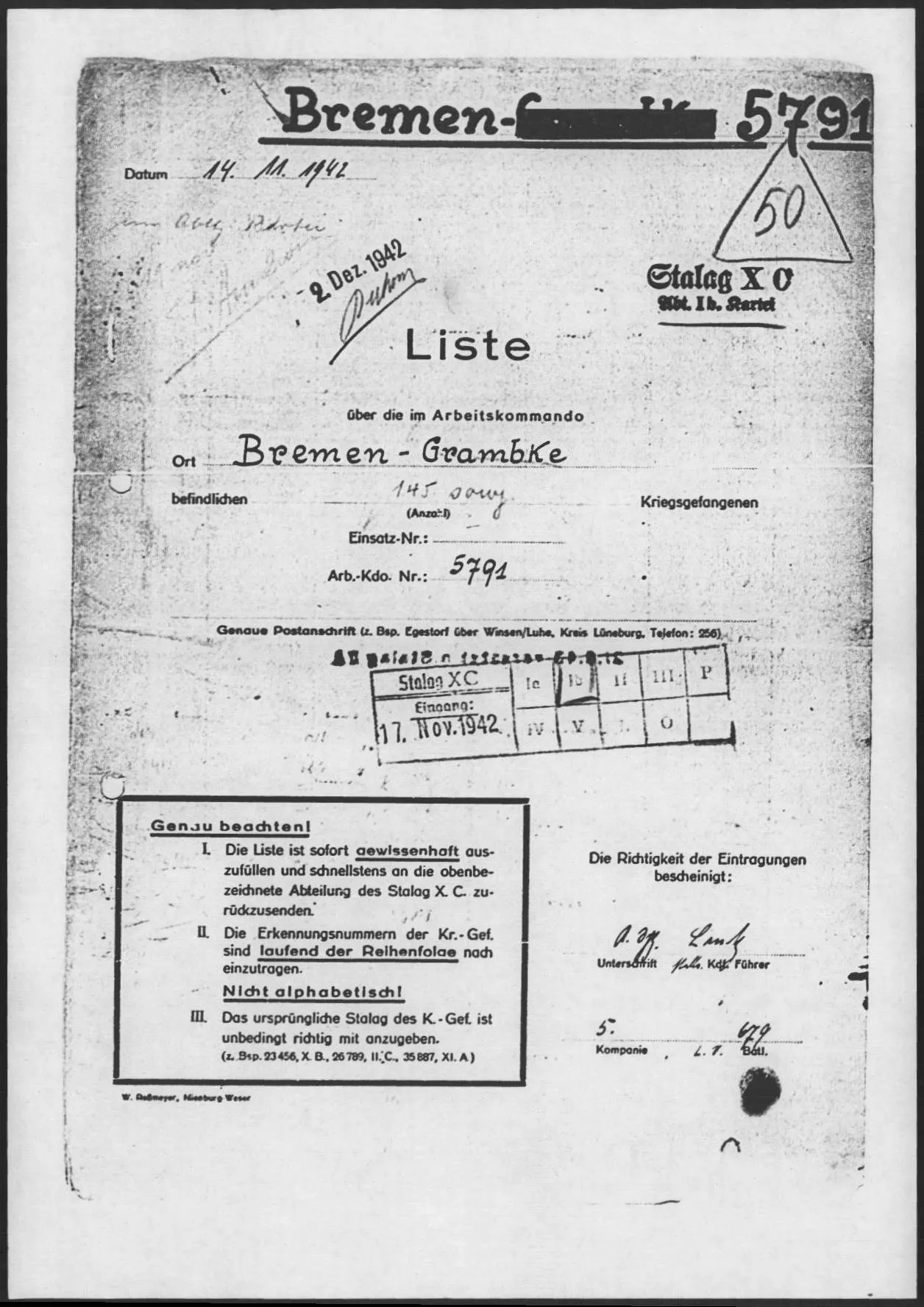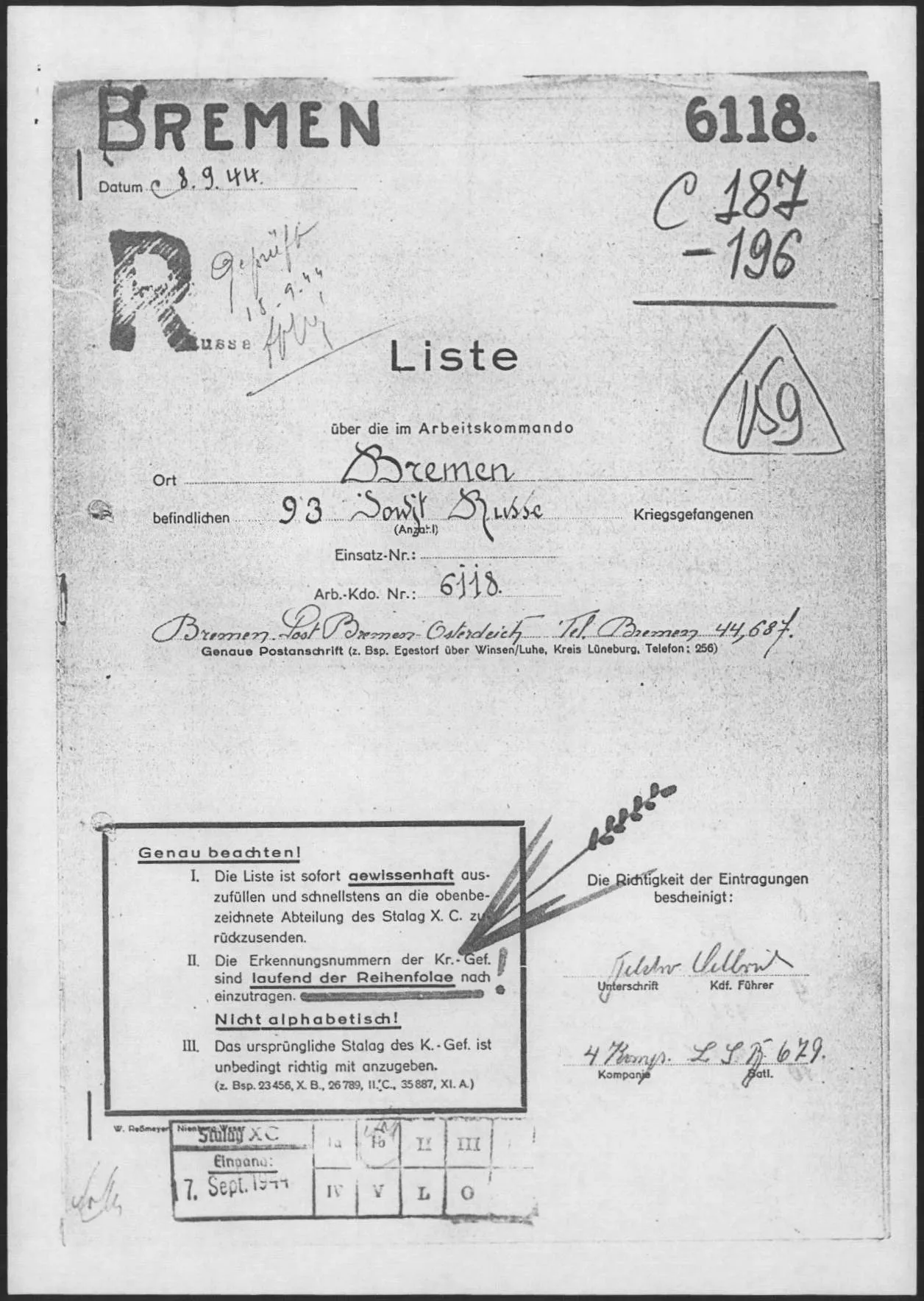 1) 118950/XB *Abgangsliste 131 Stalag XC Nienburg