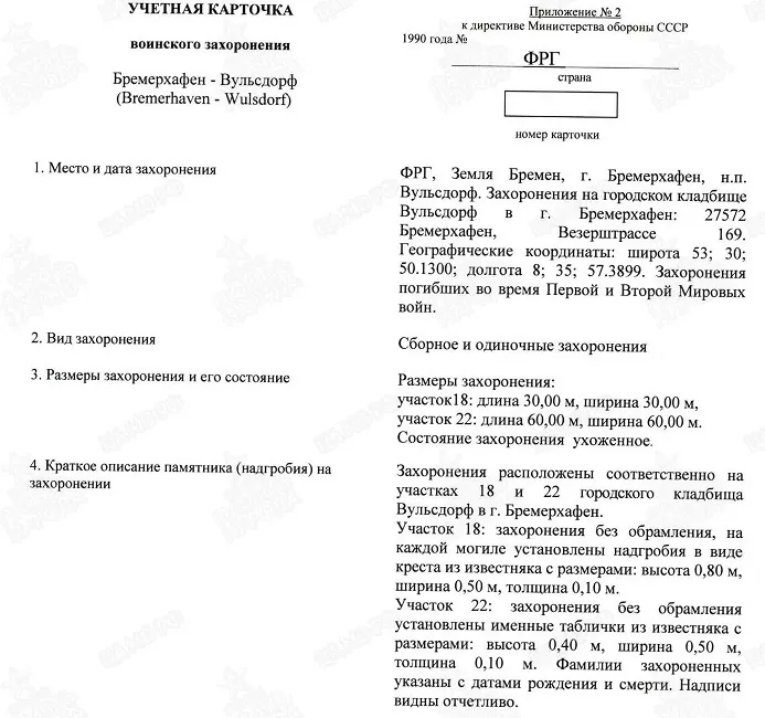 Первичное место захоронения: Германия, Земля Нижняя Саксония, Бремерхафен Вульсдорф