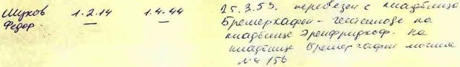 лагерный номер 2072730, умер 25.12.43, похоронен 31.12.43, могила сектор Abt. 2, Feld EH, ряд 5, номер могилы 2