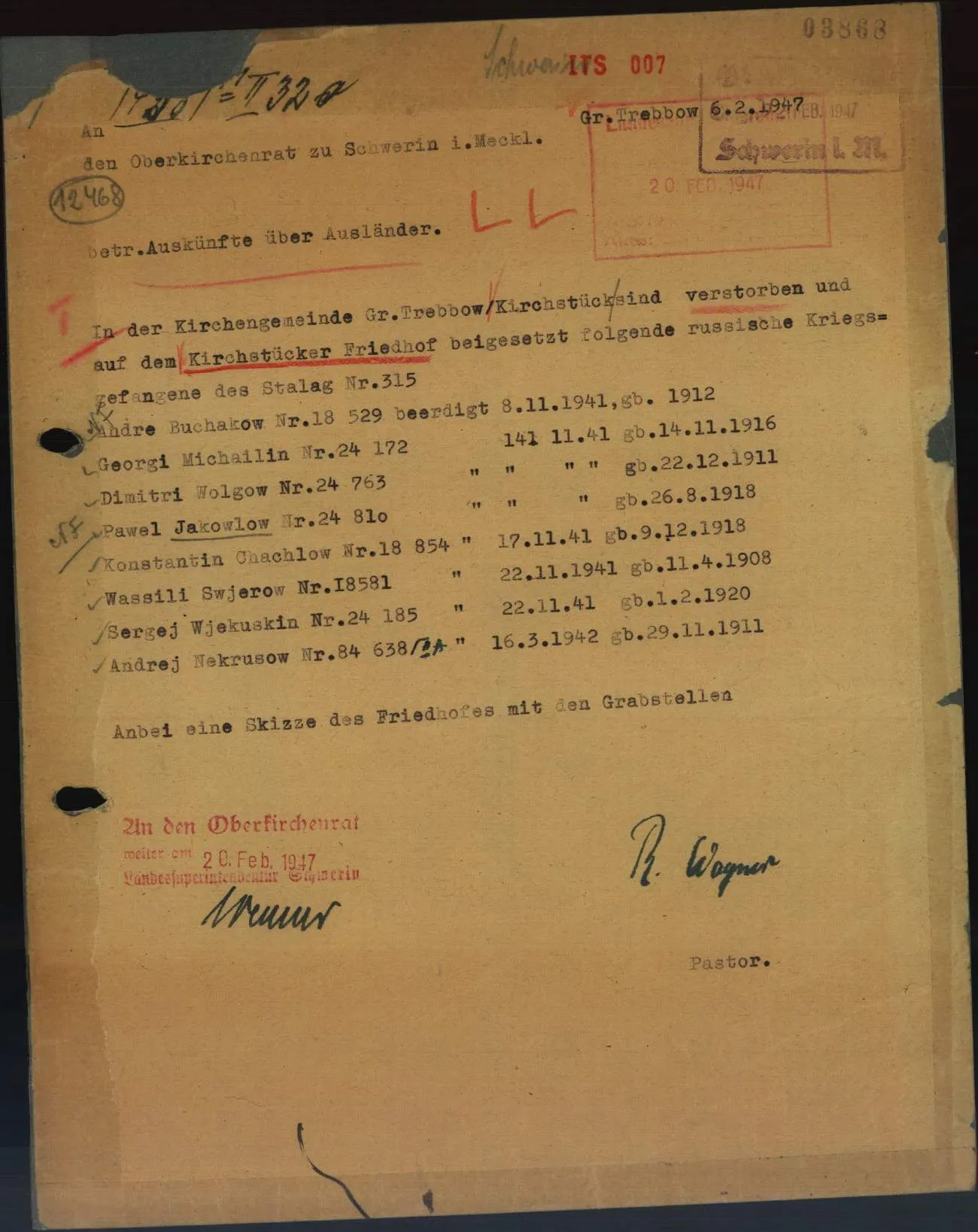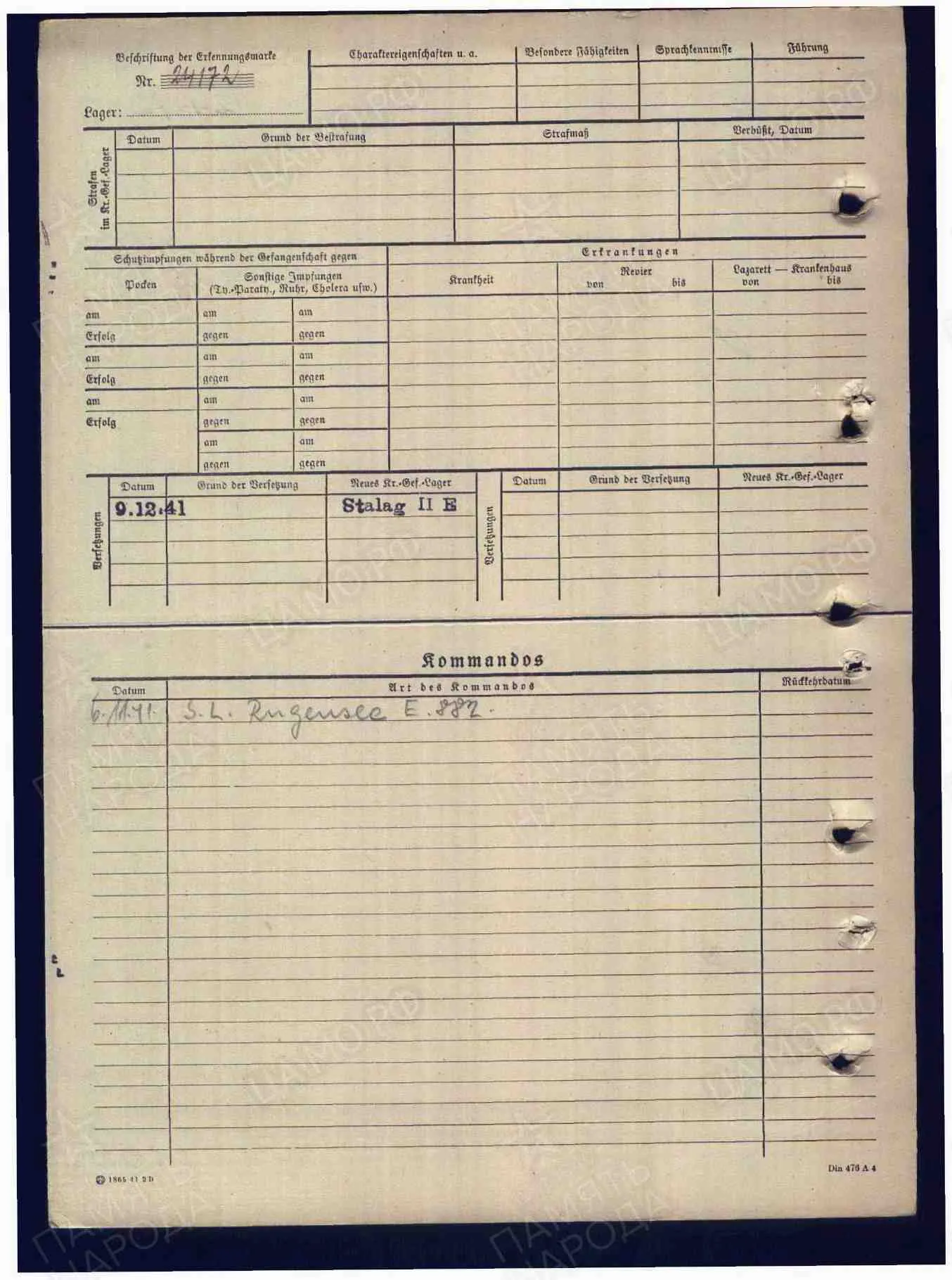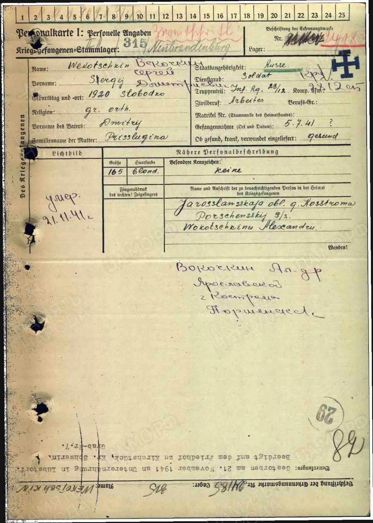 лагерный номер 24763, Stalag 315, дата смерти 14.11.1941, умер от тифа