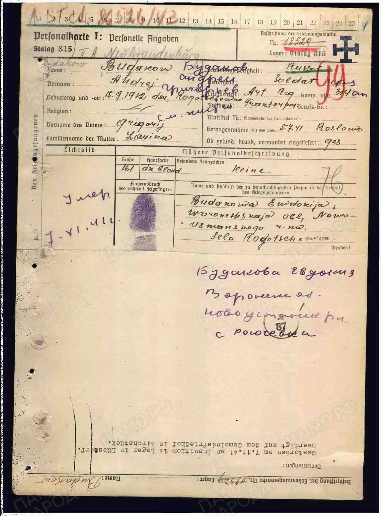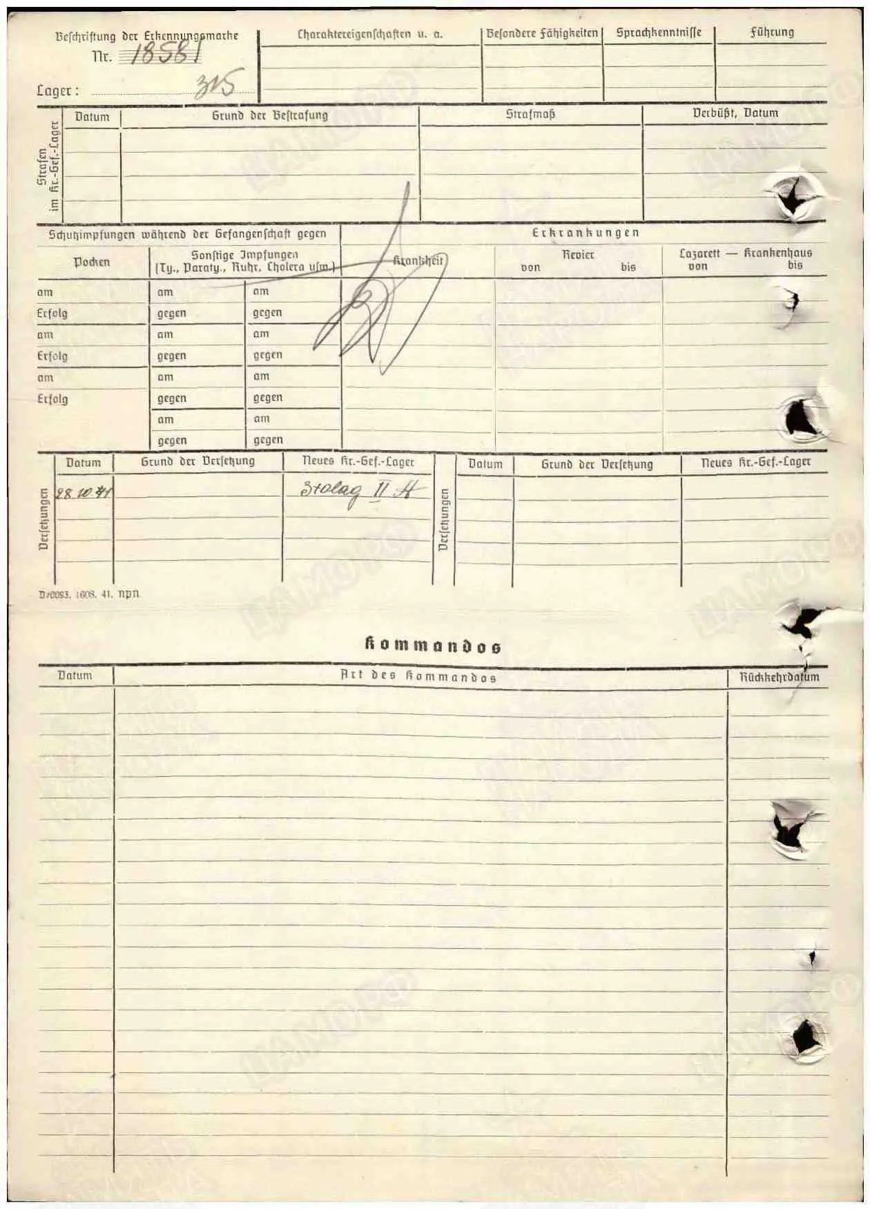 Лагерный номер 18529 Stalag 315