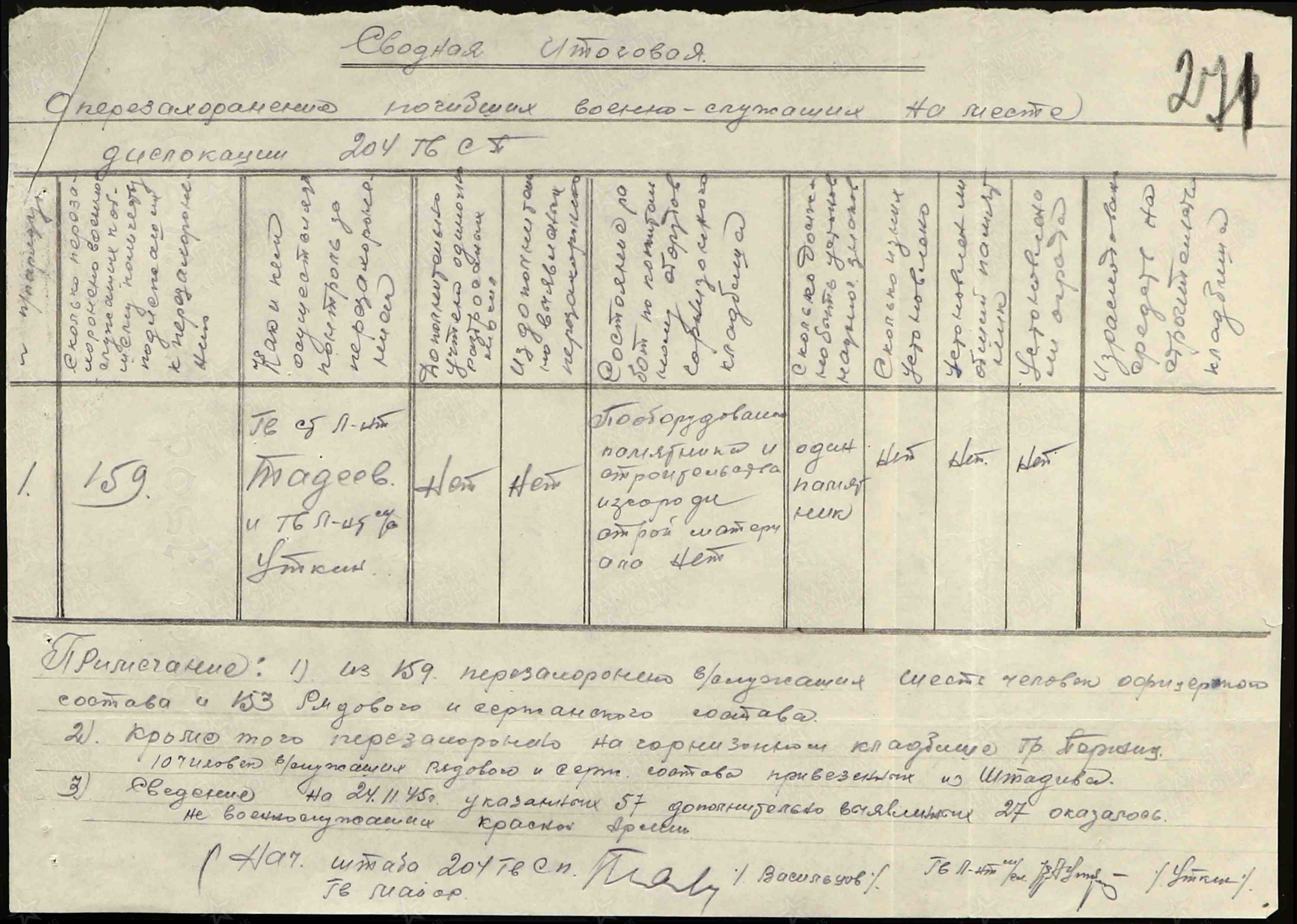 | Документ, уточняющий потери ID 1155734922 Тип донесения Донесение со списками захороненных Дата донесения 16.05.1946 Название источника информации 2032 гв. гап 21 гв. ск https://obd-memorial.ru/html/info.htm?id=1155734922&p=5