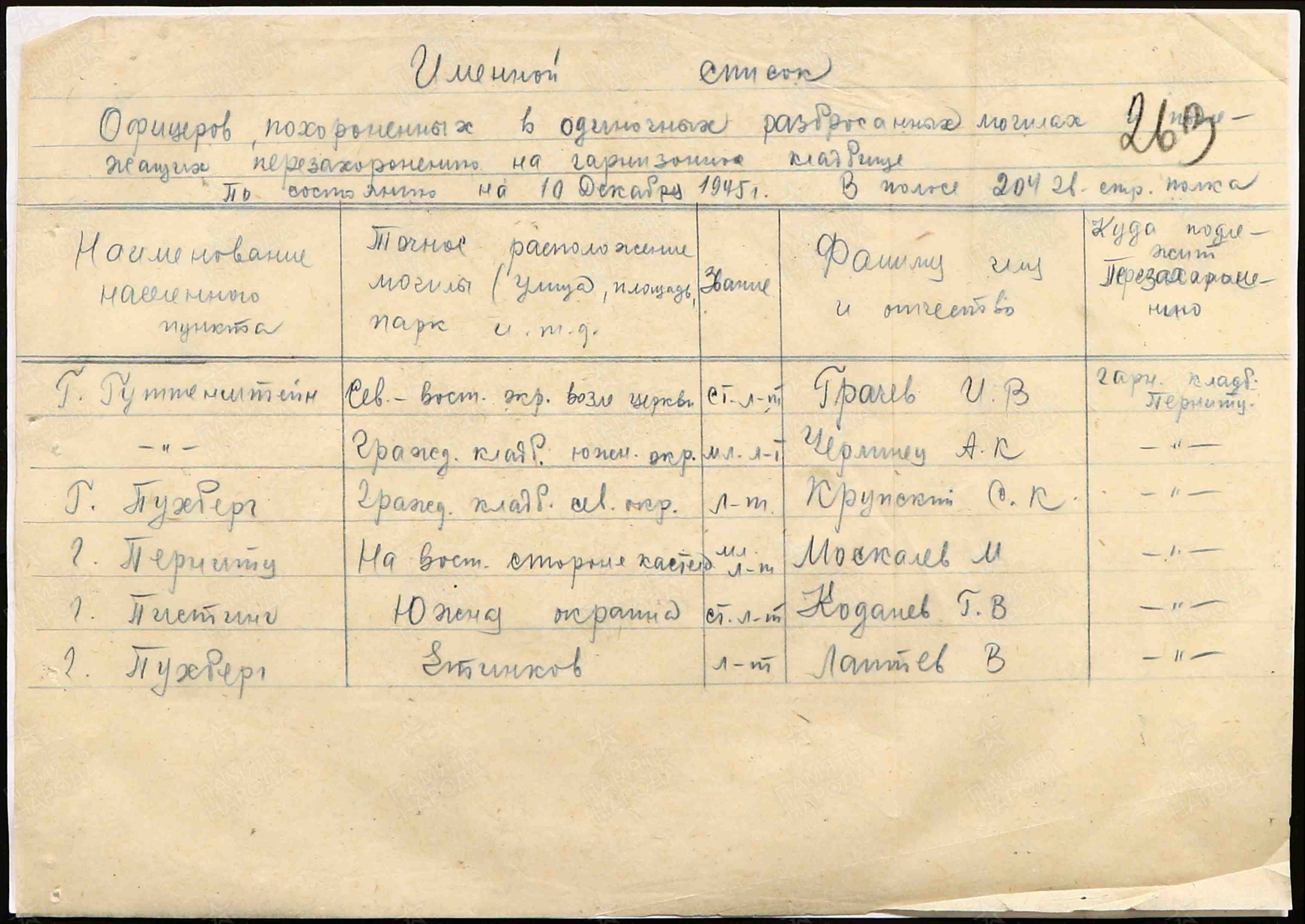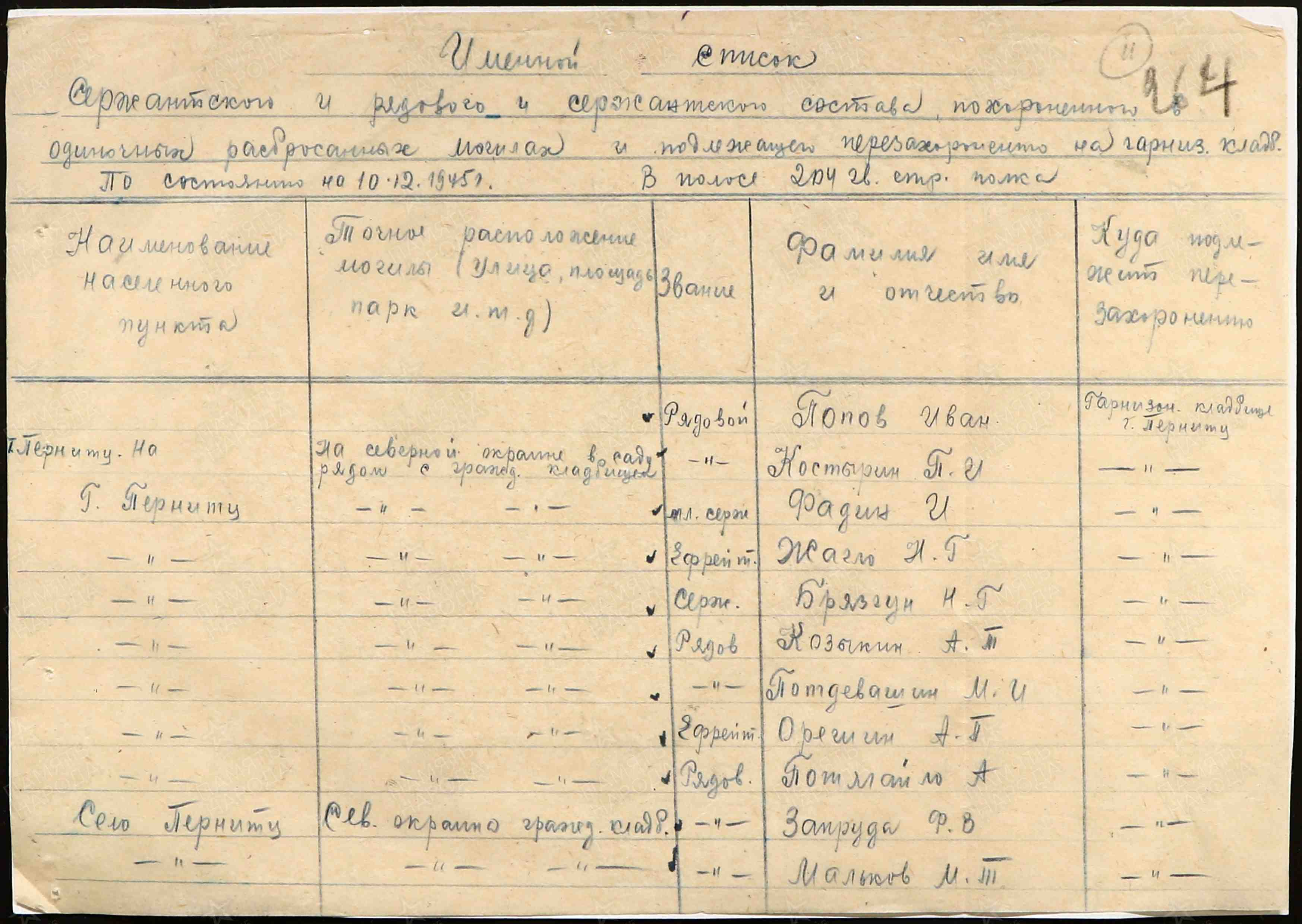 | № 8 Фамилия Егоров Имя Петр Отчество Михайлович Воинское звание красноармеец Дата смерти __.__.1945 Страна захоронения Австрия Место захоронения д. Глогнитц, южная окраина деревни Могила Могила под общим обелиском https://www.obd-memorial.ru/html/info.htm?id=261972488