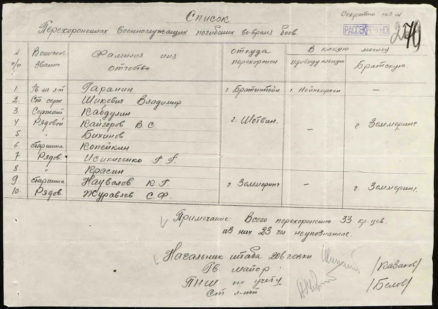| Перенос из Земмеринг в Глоггнитц. 33 человека перенесены, из них 22 человека неизвестных https://obd-memorial.ru/html/info.htm?id=1163650932&p=11