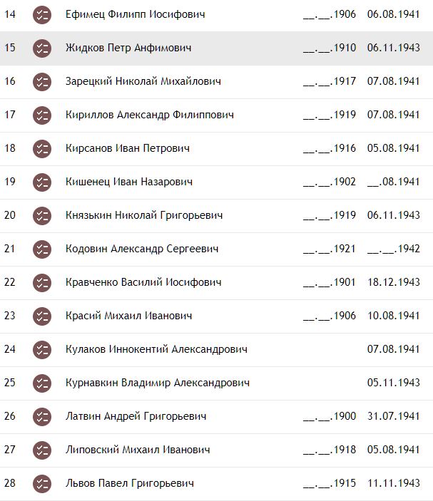 Фамилия Пятигорская Имя Людмила Отчество Афанасьевна Место захоронения Украинская ССР, Киевская обл., Киево-Святошинский р-н, Хотовский с/с, с. Хотов Причина выбытия погиб Дата выбытия 13.11.1944 Первичное место захоронения Украинская ССР, Киевская обл., Киево-Святошинский р-н, Хотовский с/с, с. Хотов Название источника донесения Управление Минобороны России УППЗО Номер дела источника информации 39020272 https://obd-memorial.ru/html/info.htm?id=1165089636 * фамилии повторяются... Николай Викторович 14 ОА ПВО 1974-1976 У России только два союзника - это Армия и Флот