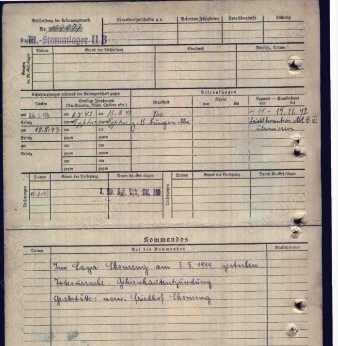 В лазарете с 19.11.1942, тоже лëгочное заболевание, умер в мае 1943, тоже отчитывается Хаммерштайн.