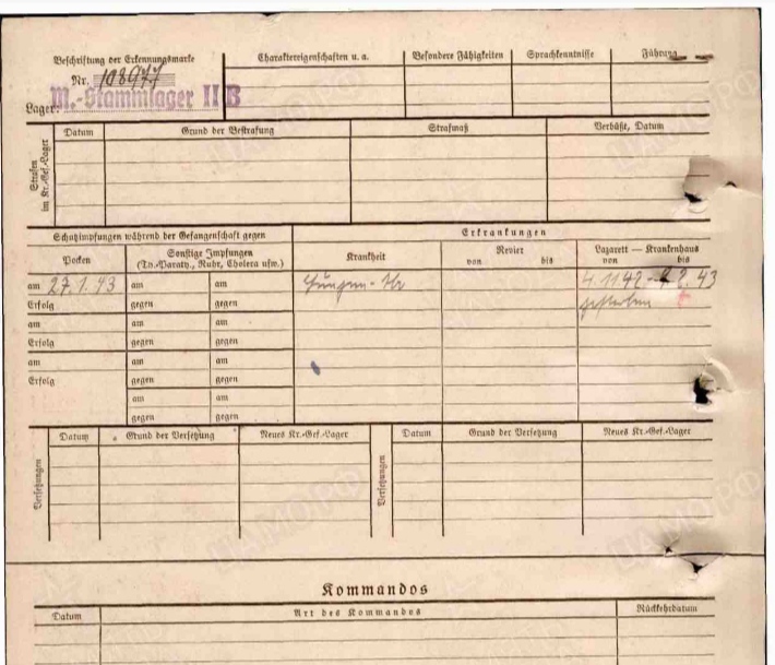 В лазарете же проставлена прививка от оспы в январе 1943