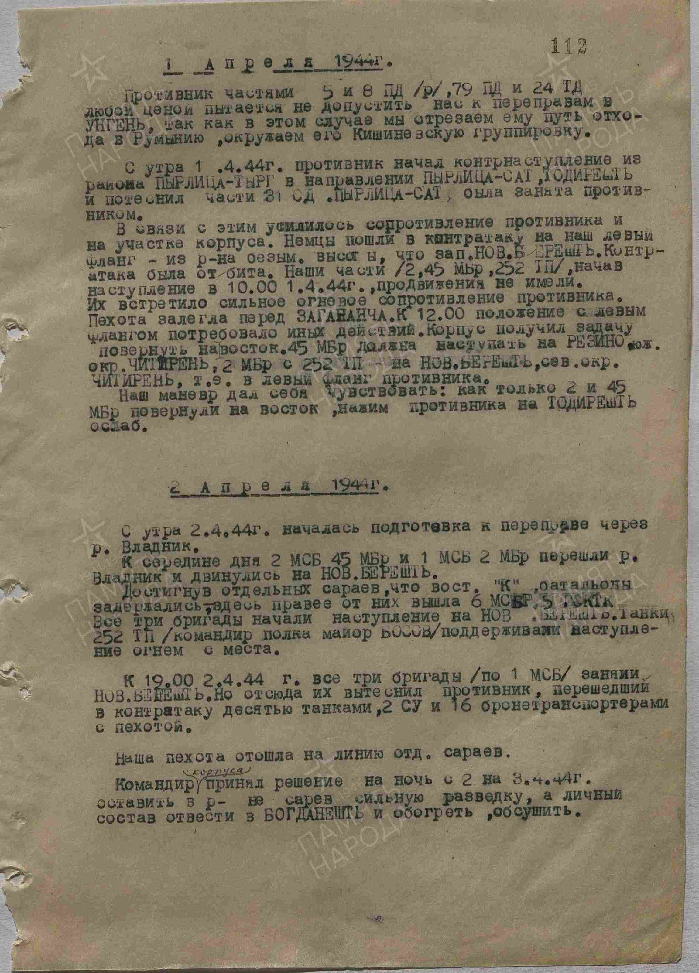 Дата выбытия 07.04.1944