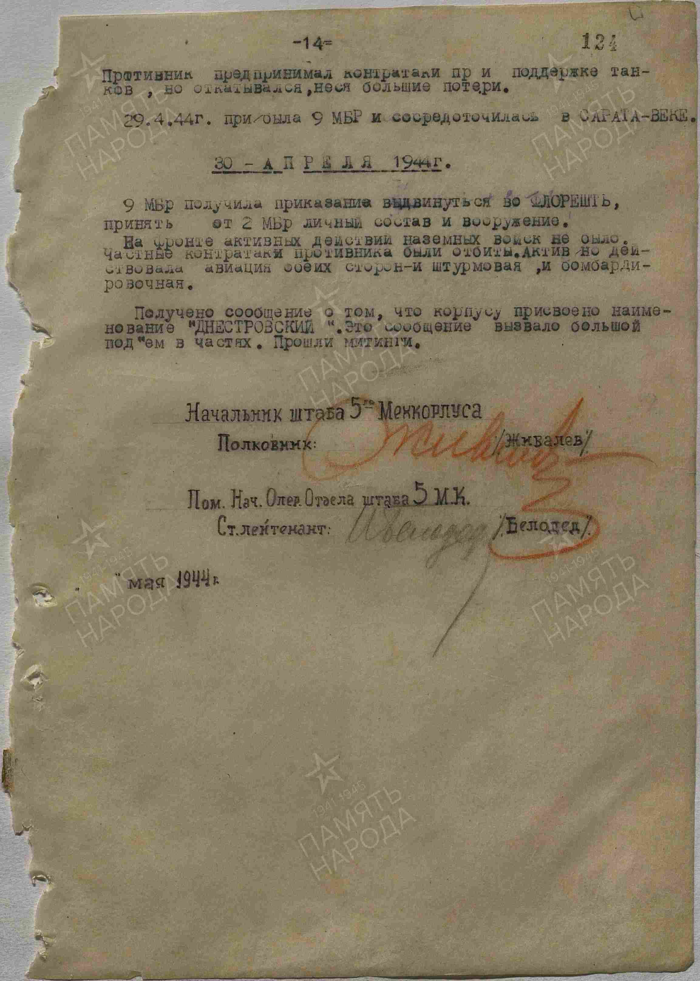 Дата выбытия 05.04.1944