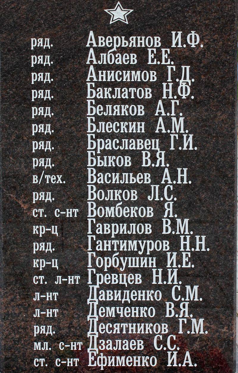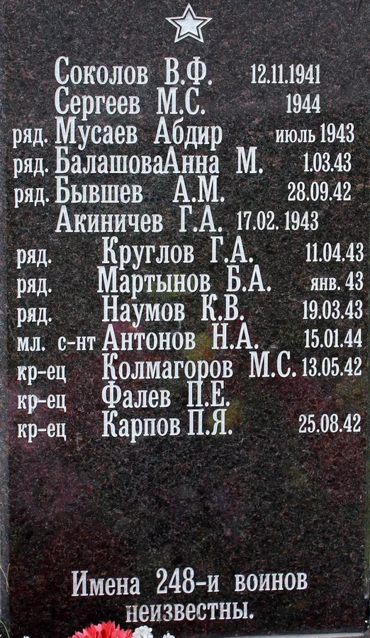 Страна захоронения Россия Регион захоронения Ленинградская обл. Номер захоронения в ВМЦ 47-401 Место захоронения Тосненский р-н, г. Никольское, Графская горка Дата создания современного места захоронения 20.06.1995 Дата последнего захоронения 20.06.1995 Вид захоронения братское захоронение Состояние захоронения удовлетворительное Захоронено всего 58 Захоронено известных 58 Захоронено неизвестных 0 Кто шефствует над захоронением АО "ЛЗСК"; Никольская средняя школа № 1 https://obd-memorial.ru/html/info.htm?id=260658777
