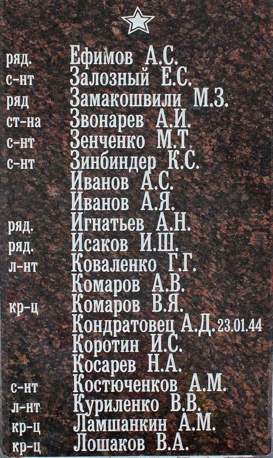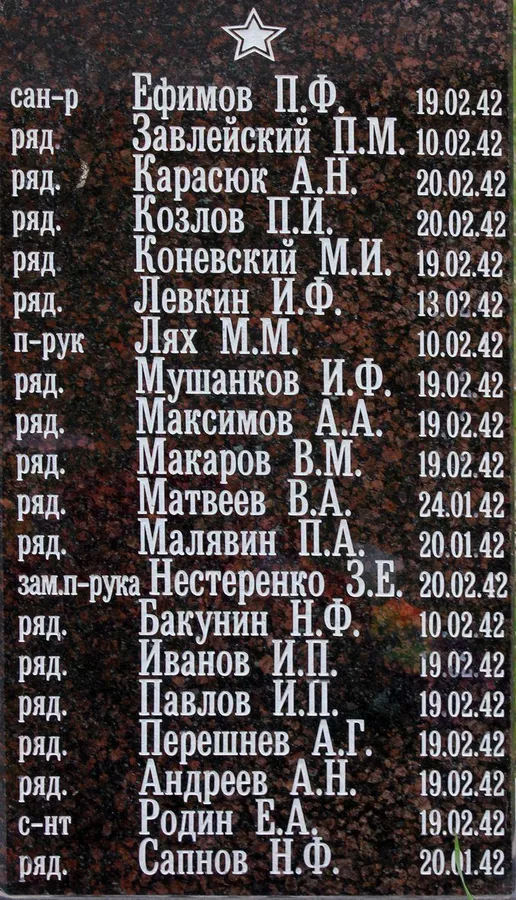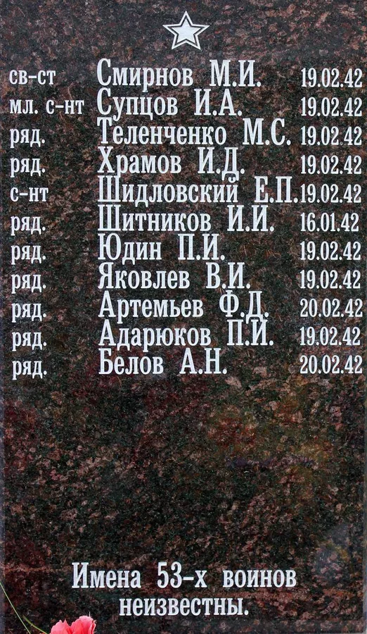 Фамилия Супцов Имя Иван Отчество Афанасьевич Дата рождения/Возраст __.__.1920 Дата и место призыва Доснитский РВК Последнее место службы 70 сд Воинское звание мл. сержант Причина выбытия убит Дата выбытия 19.02.1942 Первичное место захоронения Ленинградская обл., г. Колпино, в районе Название источника донесения ЦАМО Номер фонда источника информации 58 Номер описи источника информации 818883 Номер дела источника информации 194 https://obd-memorial.ru/html/info.htm?id=50313608