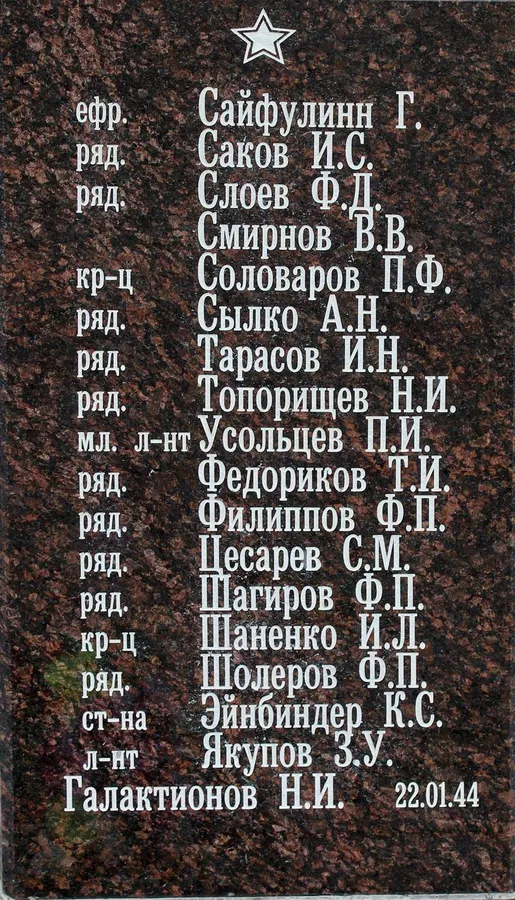 Фамилия Супцов Имя Иван Отчество Афанасьевич Дата рождения/Возраст __.__.1920 Дата и место призыва Лескенский РВК, Кабардино-Балкарская АССР, Лескенский р-н Последнее место службы 70 див. 329 сп Воинское звание мл. сержант Причина выбытия убит Дата выбытия 19.02.1942 Первичное место захоронения Ленинградская обл., г. Колпино, в районе Название источника донесения ЦАМО Номер фонда источника информации 58 Номер описи источника информации 818883 https://obd-memorial.ru/html/info.htm?id=50314587