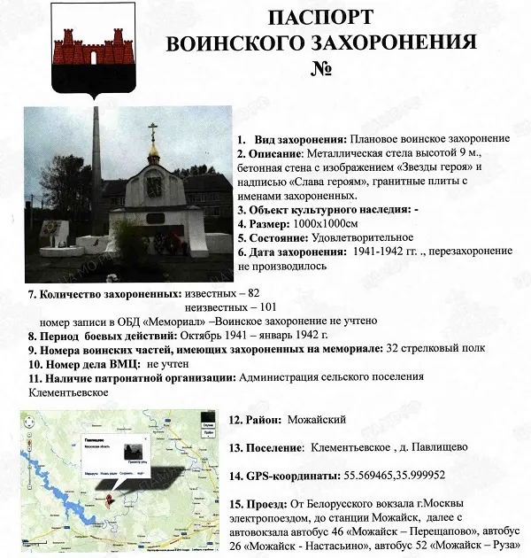| Авиации СГВ МЕМОРИАЛЫ И ЗАХОРОНЕНИЯ СОВЕТСКИХ ВОИНОВ ВОИНСКИЕ ЗАХОРОНЕНИЯ В РОССИИ Московская обл., Россия Воинские захоронения Павлищево (Братские могилы воинов РККА) |