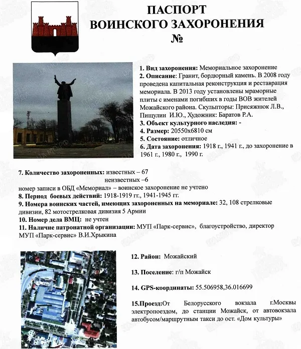 | Воинский Мемориал Можайск,ул.Клементьевская | |||||||||