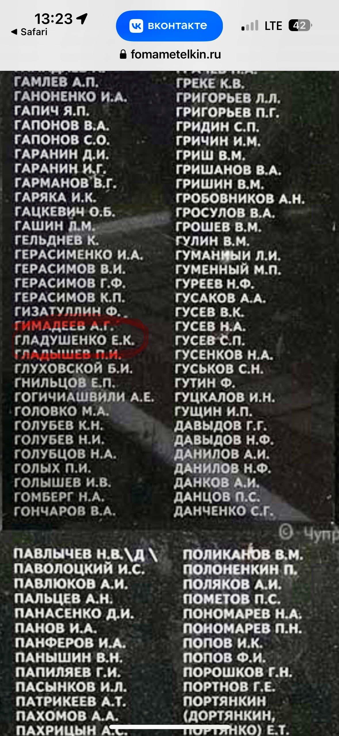 В Семеновское?Там на стеле где написаны имена ошибка в фамилии?