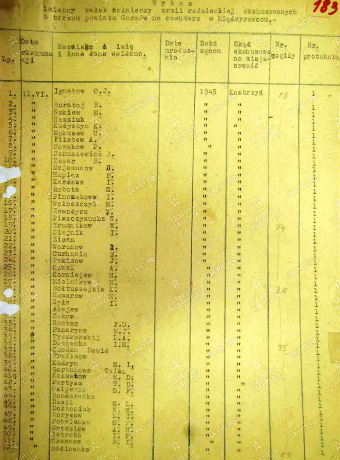 По спискам не просматривается, похоже перенесли как неизвестного в Мендзыжеч