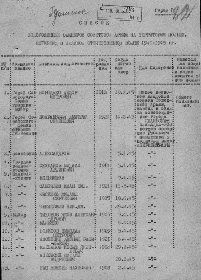 Списки смотрят те, кто внес. Нет в Польше наших военкоматов и если родственники сами не вносят, то и списки смотреть особой надобности не вижу. По Польше 80 процентов лежат неизвестными, впрочем и другие заграницы не блещут списками погибших.