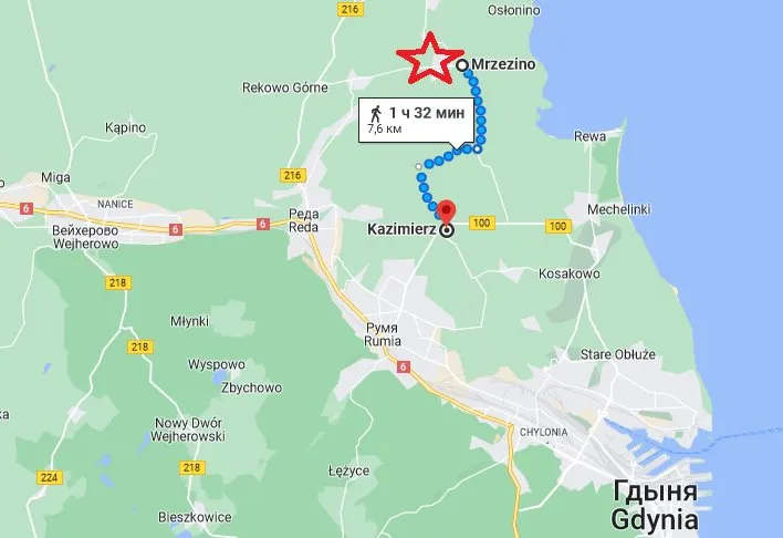 Казимеж - это деревня в административном районе Гмина Косаково, в округе Пуцк, Поморское воеводство, на севере Польши. Он расположен примерно в 5 км к северо-западу от Косаково и в 30 км к северо-западу от региональной столицы Гданьска. Деревня имеет население 350 человек. https://en.wikipedia.org/wiki/Kazimierz,_Pomeranian_Voivodeship