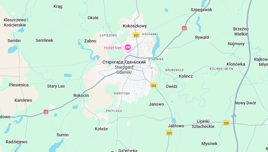 г. Старгард, ул. Костюшки, ул. Поморская, ул. Любиховская, ул. Дворцовая; гм. Осек, гр. Осек, гр. Каспарус, гр. Радогощ, гр. Маркоцин, гр. Каршанек, гр. Выцинки; гм. Зблево, гр. Зблево, гр. Божехово, гр. Бытомя, гр. Пинчин; гм. Осечна, гр. Бжежно, гр. Кланины, гр. Крувно, гр. Линувек, гр. Осечна, гр. Осувек, гр. Шляхта, гр. Зимне-Здрое; гм. Калиска, гр. Лубики, гр. Калиска; гм. Старогард-Веш, гр. Котеже, гр. Линувец, гр. Рывальд, гр. Тшцинск, гр. Жабно; гм. Бобово, гр. Бобово, гр. Домбрувка, гр. Грабово, гр. Грабовец, гр. Высока