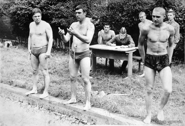 На первом фото -это ты собираешься посоревноваться в плавании на время с самим зам.командира полка В.Гурдиным ? Вижу, нач.физ В.Зимницкий стоит с секундомером .