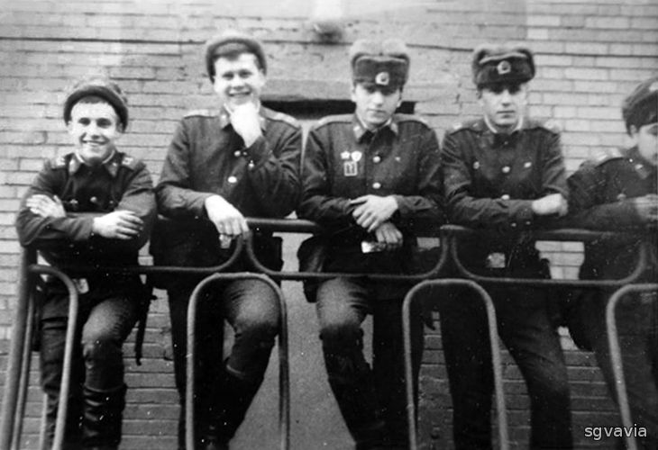 На крыльце караульного помещения Соколов , Пряхин, третьего не помну, Углев, москвич тоже не помну.