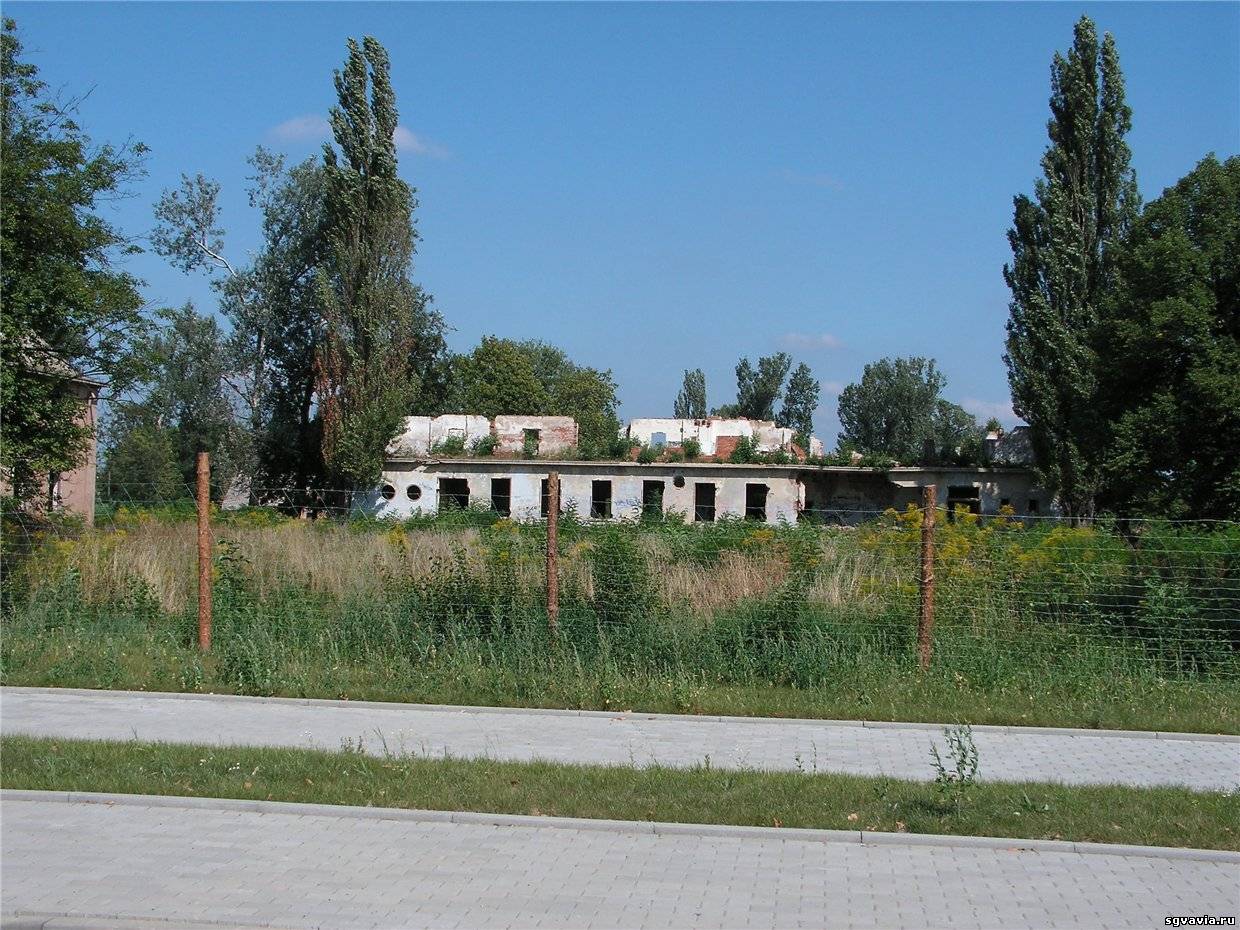 Похоже это и впрямь наша столовая...увы...Заросли перед ней это спорт городок и волейбольная площадка вч пп 26223....справа примыкал двор караульного помещения,само оно находилось на чердачном этаже справа..........перед столовой слева перпендикулярно ей стояла наша казарма,а справа такая же казарма , ( на фото виден тротуар вдоль нее) в подвале которой была общая кочегарка......( смотри прикрепление) Ах,блин ,жаль захват маловат,интересно на казармы было бы посмотреть-что от них осталось....На территориях складов похоже все снесли-те что на снимках полуразрушены уже...одного не понимаю,на фига все было растаскивать по кирпичам-это бы еще 300 лет простояло...(((( Впрочем,вспоминая нашу гарнизонную свалку,на которой всегда паслись польские машины и подводы...не удивлен...И "блошиный рынок" помню в патруле бывши ,видел....ржал помню...мазутную и грязную,рваную (видать в автопарке побывала) шинель -продавали за 20 злотых....
