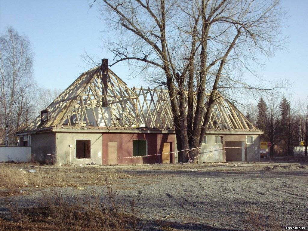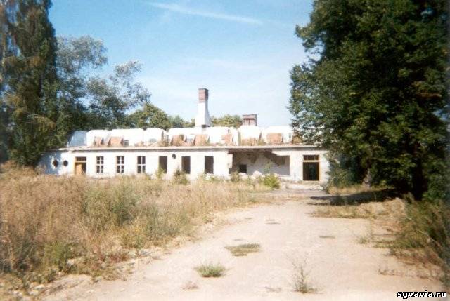 КПП - только вид сзади. Здесь располагалось караульное помещение. Крайнее левое окно - спальное помещение, через окно видна дверь - это вход в спальное помещение. Окно посередине - сидел начкар. Правее двери, там где дерево, была столовая, сушилка.