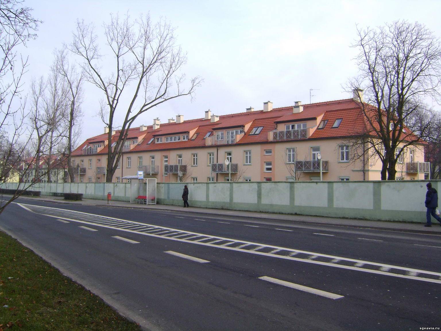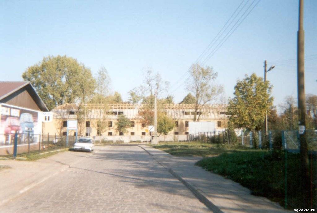 Кто знает, что располагалось в этих зданиях? Для ориентира - слева за дорогой была польская часть. Дорога ведет через офицерский клуб к КПП2. За последним зданием слева офицерский клуб.