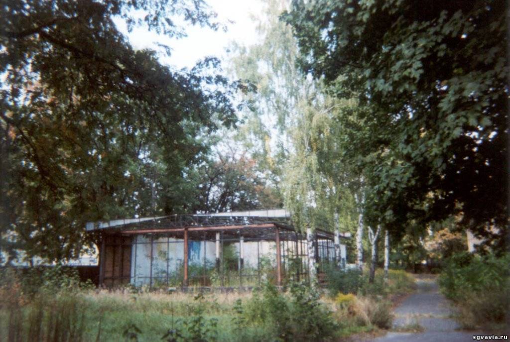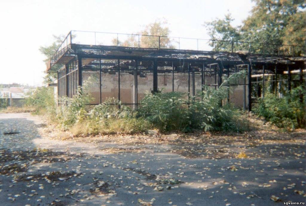 Остатки продовольственного магазина. Сзади магазина частенько ловили панов. Они лазили через забор, чтобы попасть в магазин. У них в конце 80-х был напряг с продовольствием, да и цены "кусались", а у нас изобилие...