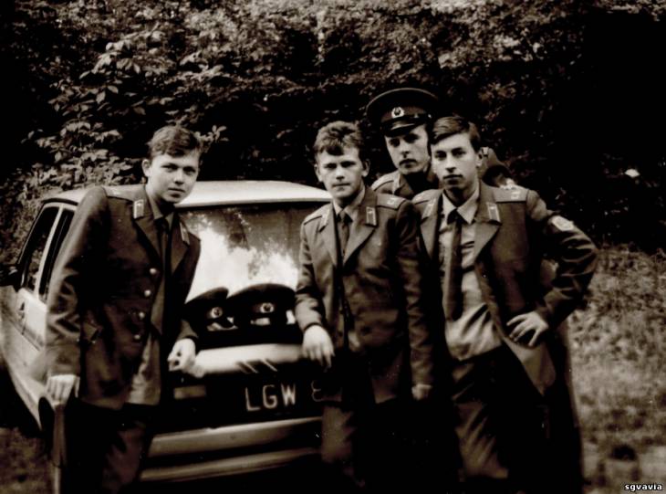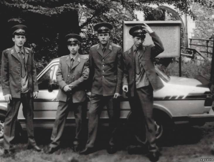 На верхнем фото 1-имя забыл,был сначала каптером потом ком.отд. 2й -Я , 3-Койляк из Ивано-Франковской обл. уволился старшиной,зам. ком. взв.4-Хмелевский Витек тоже Ивано-Франковская обл. С уважением Сергей Отрезов Шпротава, ОБАТО в/ч 78673, РО, осень 1989-91