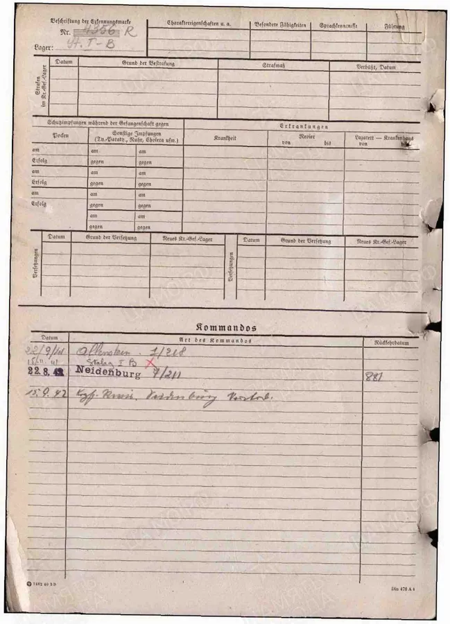 | Авиации СГВ ВОЕННОПЛЕННЫЕ - ШТАЛАГИ, ОФЛАГИ, КОНЦЛАГЕРЯ Лагеря I военного округа Германии ( Königsberg ) Stalag I B Hohenstein Kgf.Lazarett Neidenburg (Нидзица (пол. Nidzica, нем. Neidenburg)) |