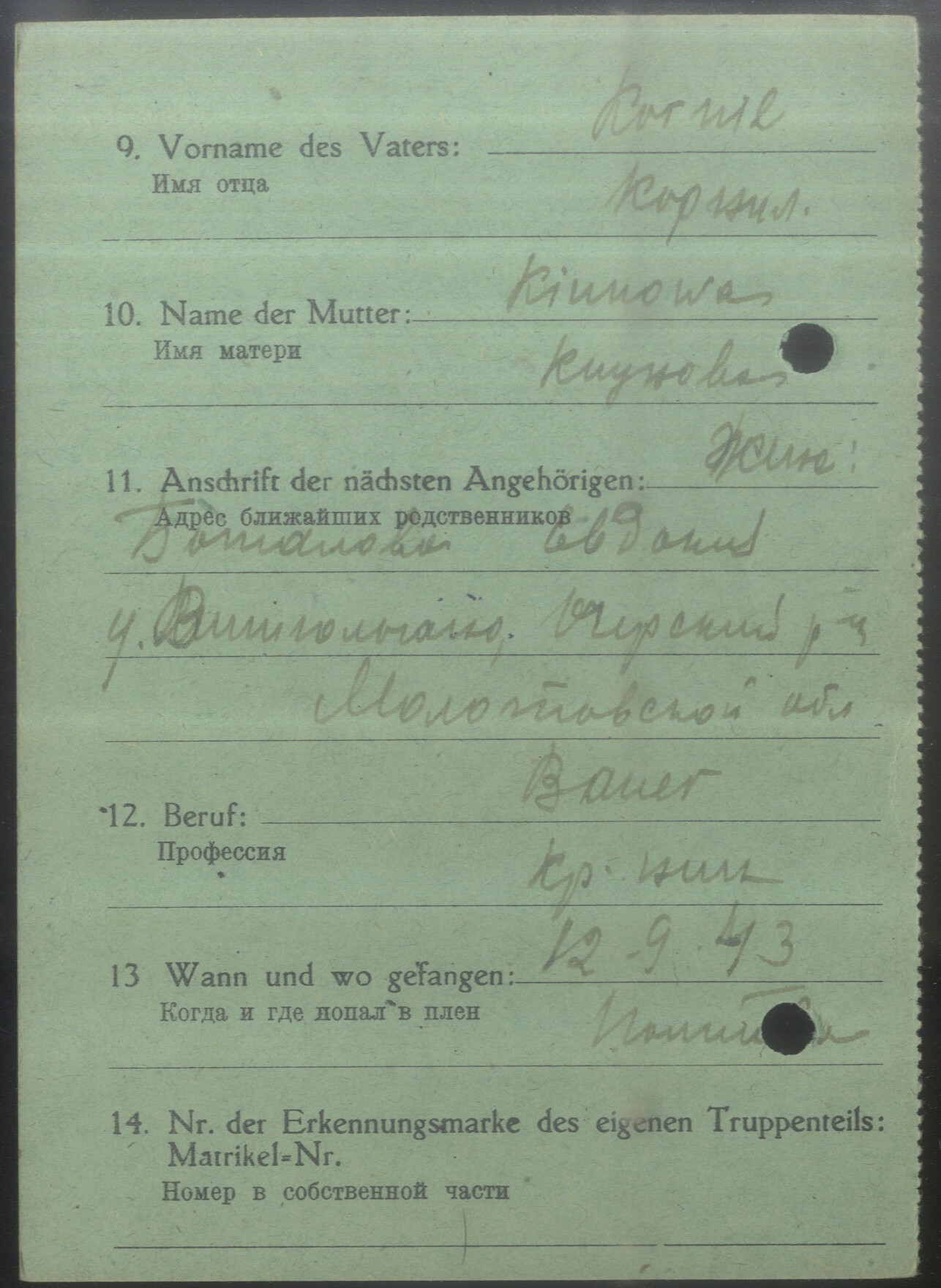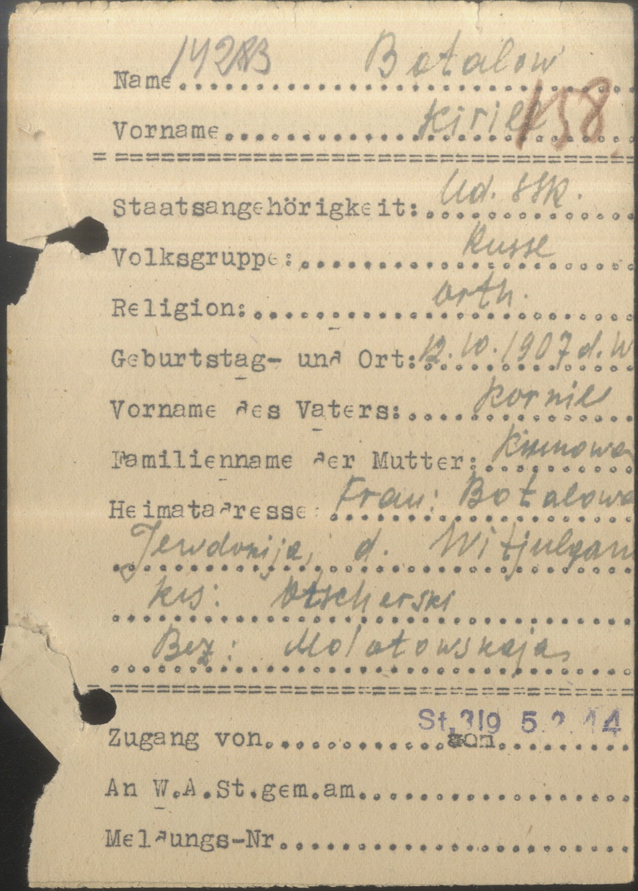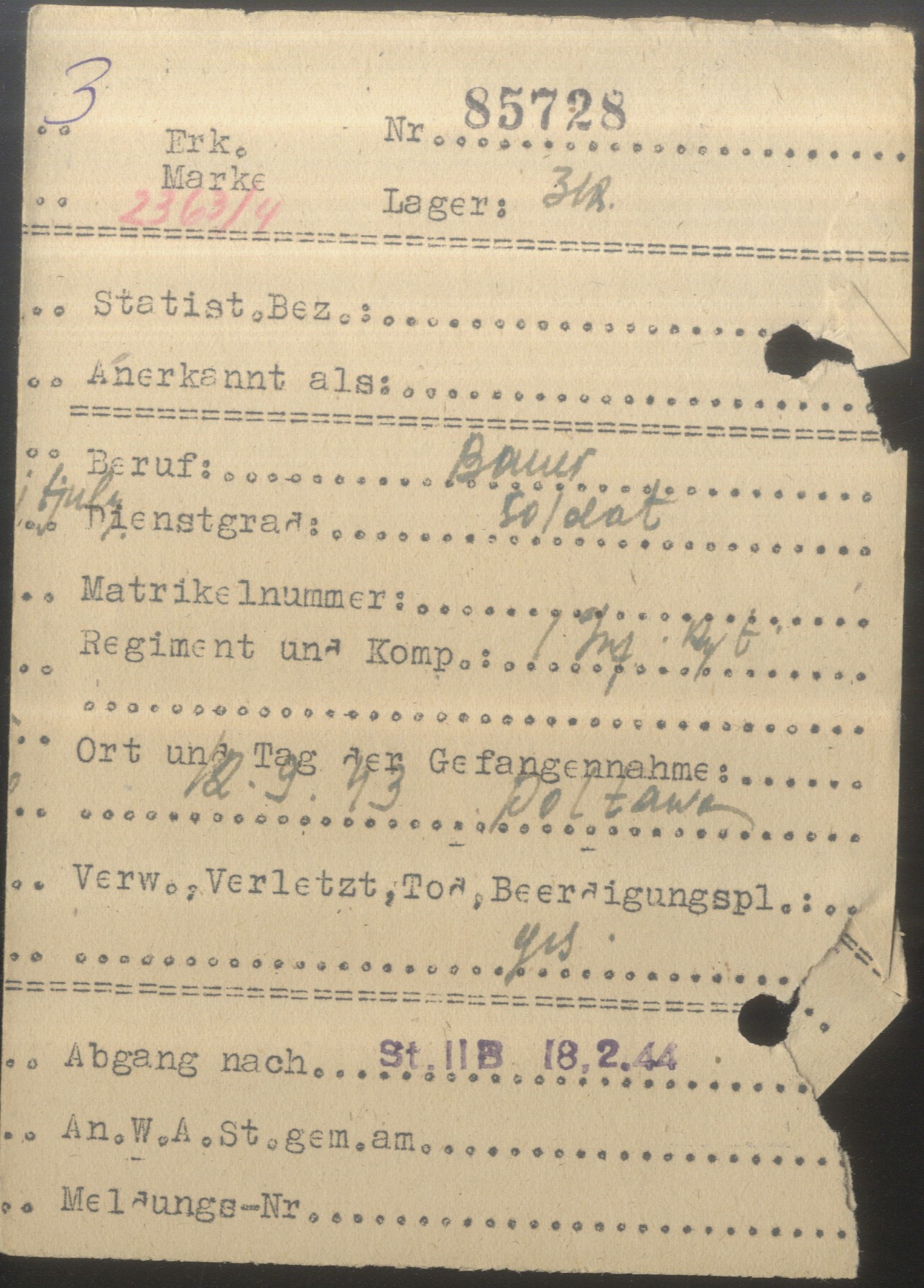 Посылали запросы в архив Арользен - данных нет, и ПермГАСПИ по месту жительства до призыва - нашли только лагерную карту до момента перевода в Stalag IIB. Буду признательна за любую информацию.
