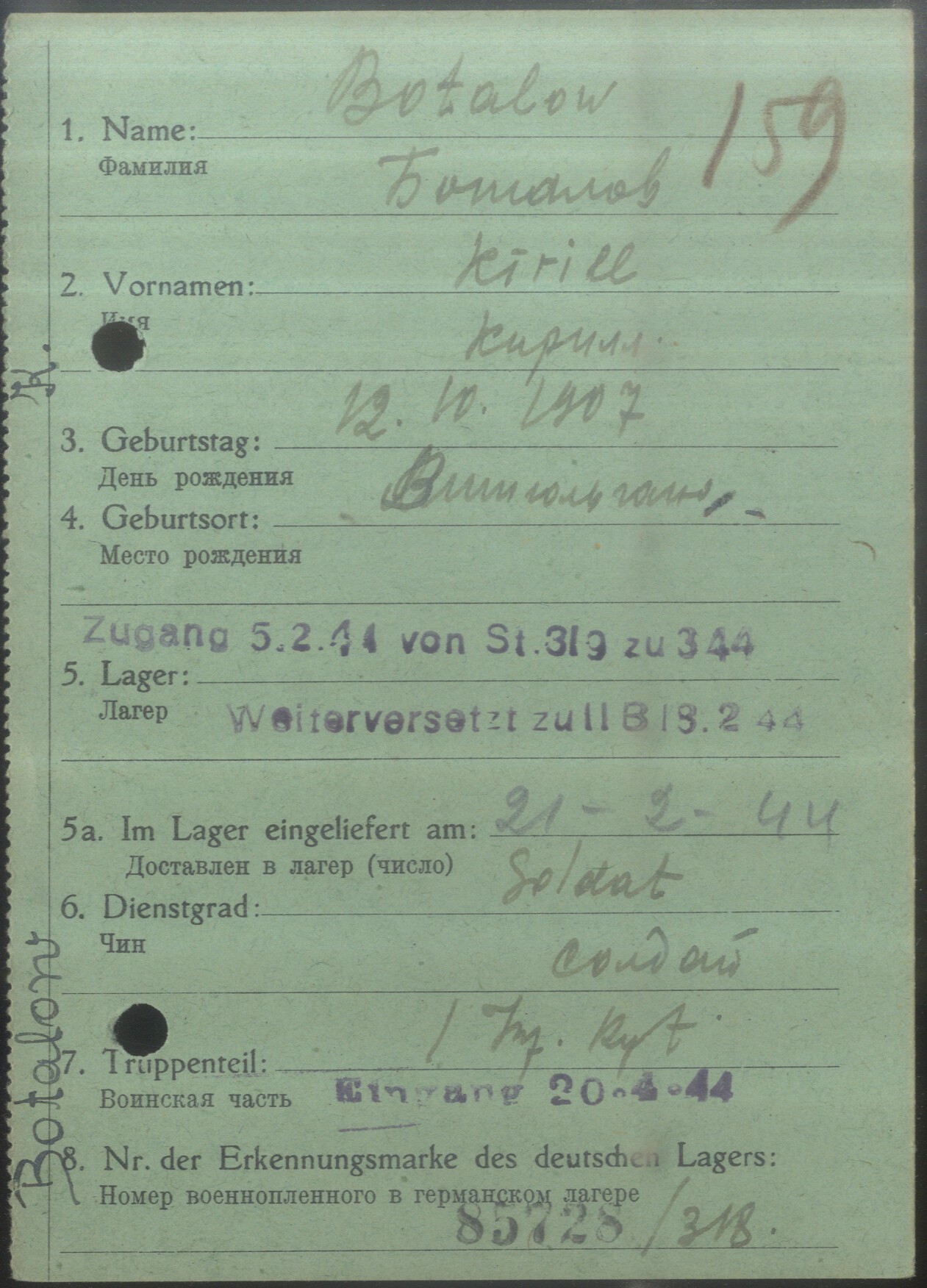Доброго времени суток! Вопрос к знатокам. В данный момент работаем на тем, чтобы выяснить судьбу деда, Бо(а)талова Кирилла Корниловича. Из того, что удалось выяснить - в феврале 1944 года его переводят в Stalag IIB, но в СССР он возвращается после освобождения из Норвегии! Переводили ли военнопленных из данного лагеря в Норвегию? Существуют ли документы по переводу? По возвращению дед фильтрацию не прошел и был осужден.(