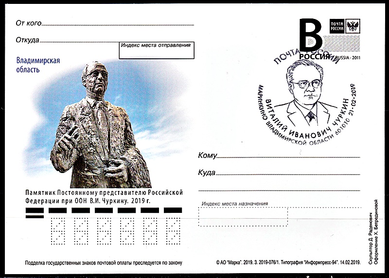 ---------------------------------------------------------------------------------------------------------------------------------------------------------- P.S. 21 февраля 2019г. в деревне Маринкино Киржачского района Владимирской области открыли памятник Виталию Чуркину. Церемонию приурочили к 67-летию со дня рождения дипломата.