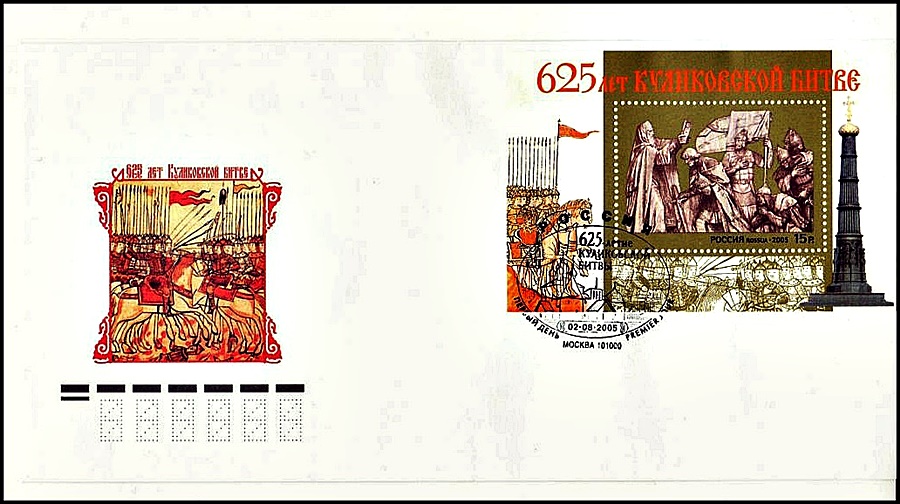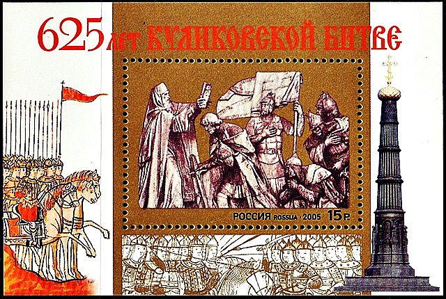 Почтовый блок 2005 г. «Преподобный Сергий благословляет Дмитрия на борьбу с Мамаем»
