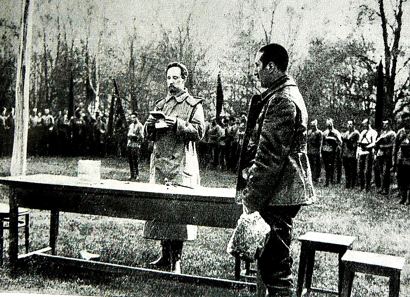 Бойцы Тамбовского полка принимают присягу (возможно среди бойцов стоит и мой дед) . Тамбов, присягу читает Н. И. Подвойский, справа - начдив В. Киквидзе фото из инета