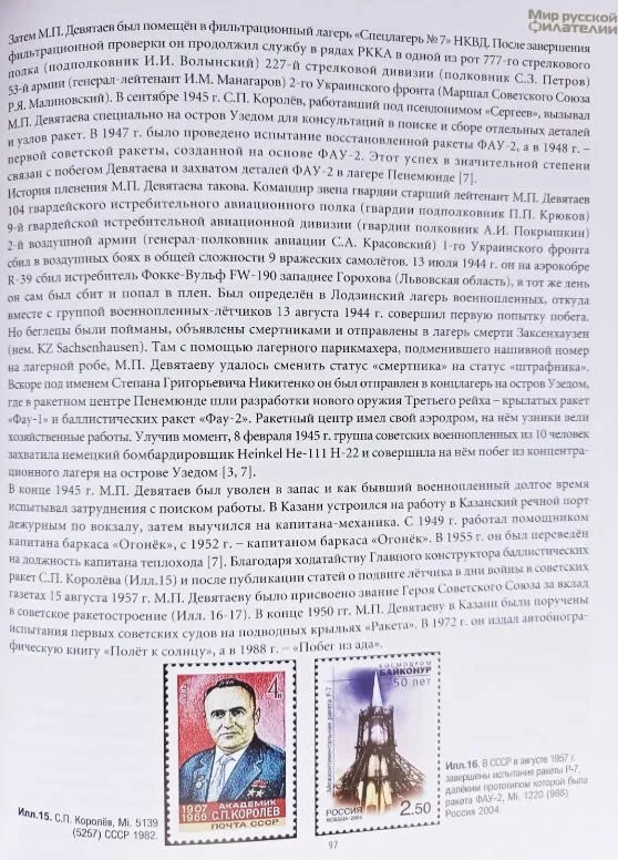 | 8 февраля 1945 года с ракетной базы острова Узедом совершила дерзкий побег группа М.П. Девятаева. В журнале "Мир русской филателии" N 3-4 за 2025 год на эту тему опубликована моя статья...