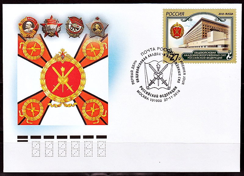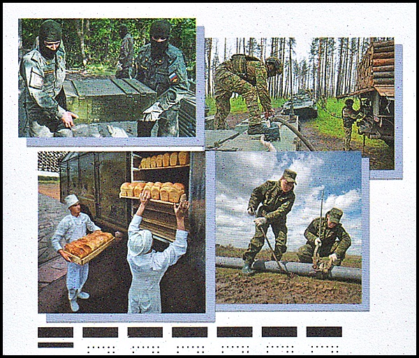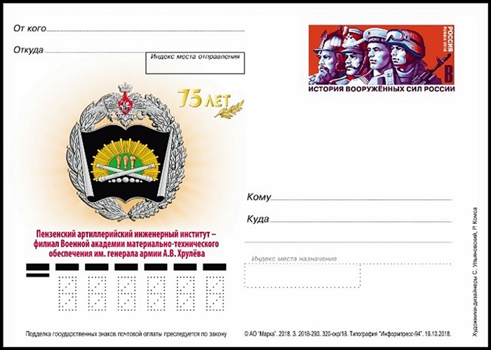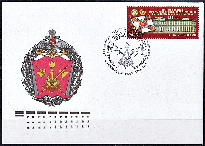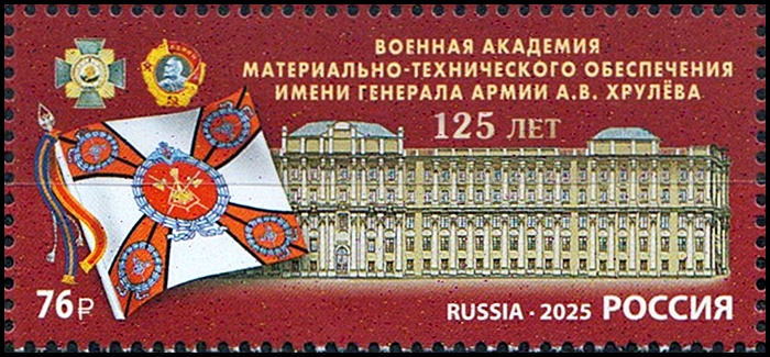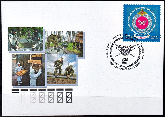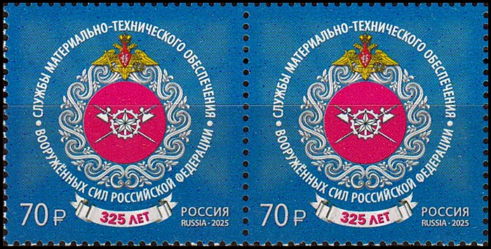 На почтовой марке изображена эмблема Служб материально-технического обеспечения Вооружённых Сил Российской Федерации.