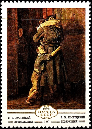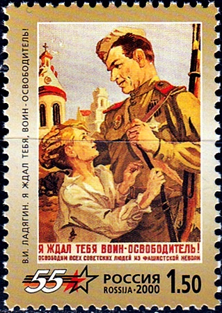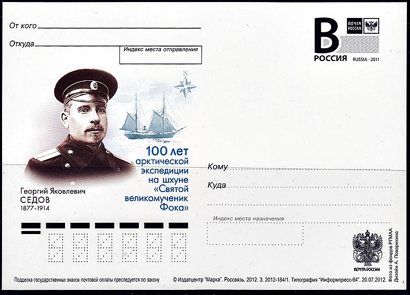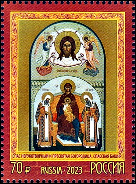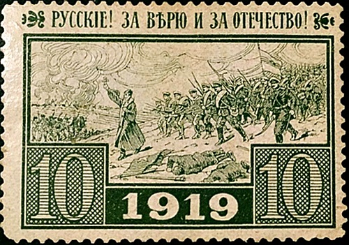 Марка посвящена подвигу о. Стефана (Щербаковского), относящейся к русско-японской войне — священник с поднятым крестом впереди в момент атаки русской пехоты, под флагом России, лозунг — «Русские! За веру и за Отечество!»