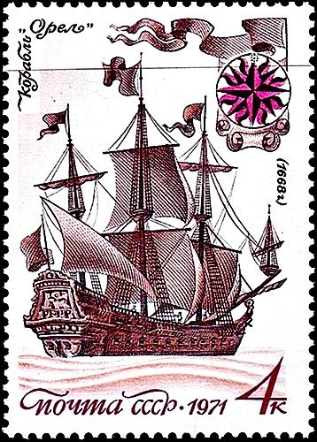 Чем руководствовался Петр, подбирая цвета, осталось загадкой. Существует версия о выборе цветов для флага - цвета российского флага, возможно, были подсказаны тем самым голландцем, который построил "Орел", а потом рассказал, что на его родине, в Голландии, на кораблях поднимают трехполосный красно-бело-синий флаг.