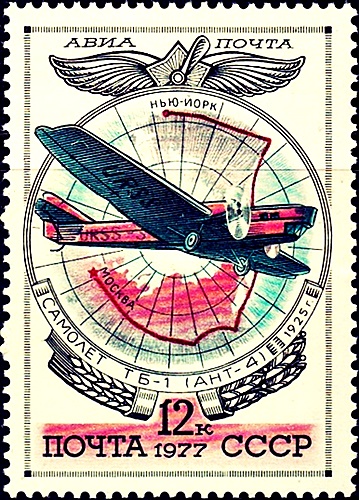 ТБ-1 (АНТ-4) на марке Почты СССР, 1937 год,
