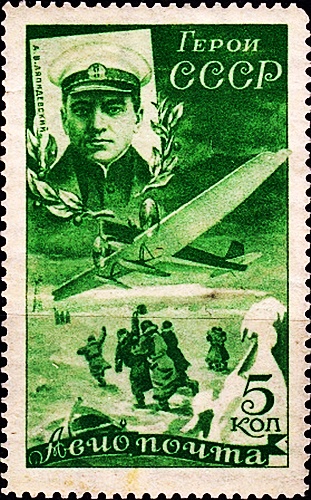 Анатолий Ляпидевский,на марке Почты СССР 1935 год.