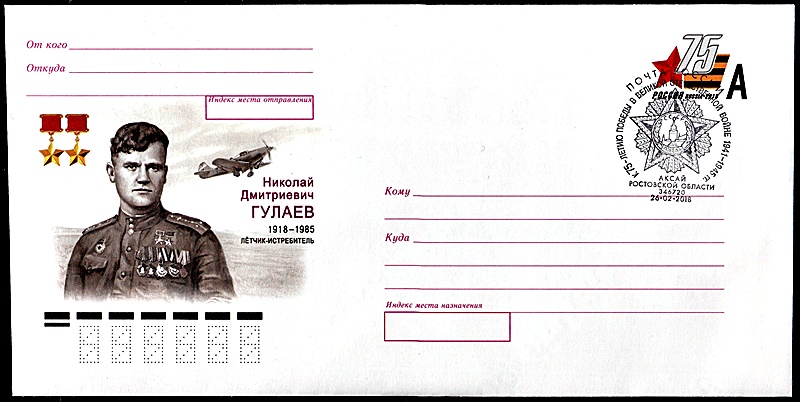 | 1918 г. Николай Дмитриевич ГУЛАЕВ (26.2.1918 — 27.9.1985), летчик-истребитель, дважды Герой Советского Союза.