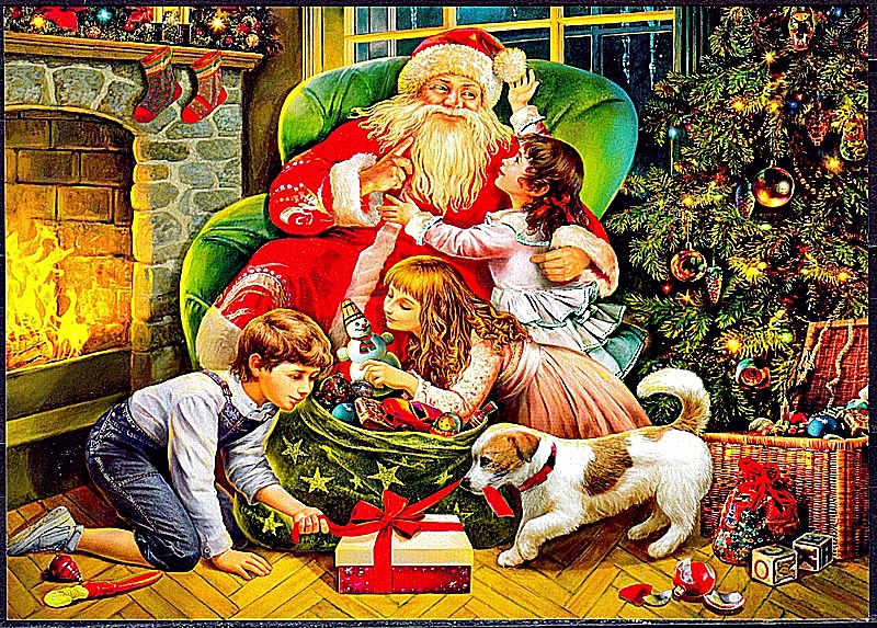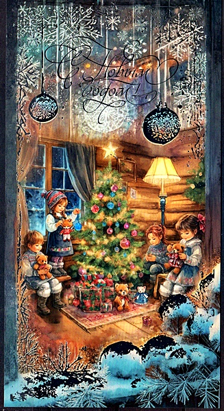 Теперь зимний волшебник приходит в Новый год, а когда-то рождественская елка – становится новогодней. Дед Мороз того времени – высокий, с седой бородой, в красной, белой или синей шубе с меховой оторочкой. У него всегда при себе волшебный посох и мешок с подарками.