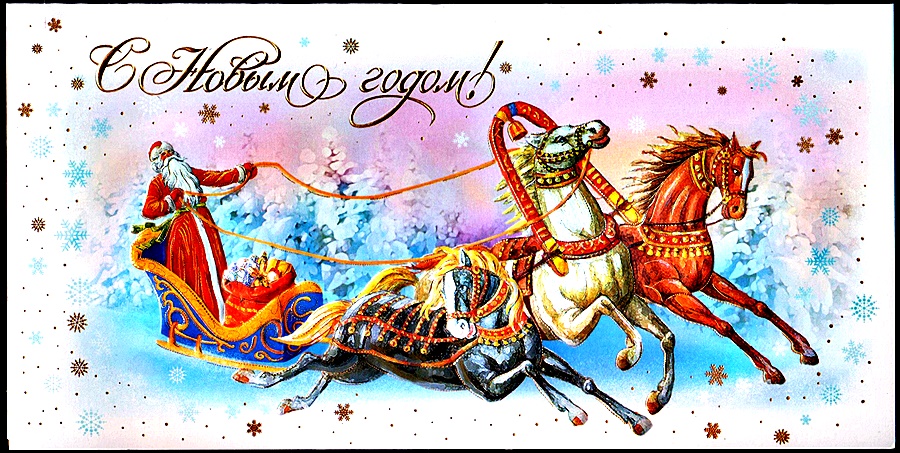 Передвигается он в санях, запряженных тройкой лошадей. С тех пор образ Деда Мороза сильно не изменился. Появилась спутница – внучка Снегурочка.