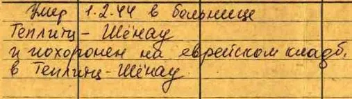 Фамилия Шкода Имя Трофим Отчество Андреевич Дата рождения/Возраст 22.08.1906 Место рождения Ростовская обл. Лагерный номер 172407 Дата пленения 13.05.1942 Место пленения Керчь Лагерь шталаг IV B Судьба Погиб в плену Воинское звание красноармеец|рядовой Дата смерти 06.02.1943 Место захоронения Теплиц Фамилия на латинице Schkoda Название источника информации ЦАМО Номер фонда источника информации 58 Номер описи источника информации 977520 Номер дела источника информации 2144 https://www.obd-memorial.ru/html/info.htm?id=300264743&page=2 gestorben in Teplitz VII