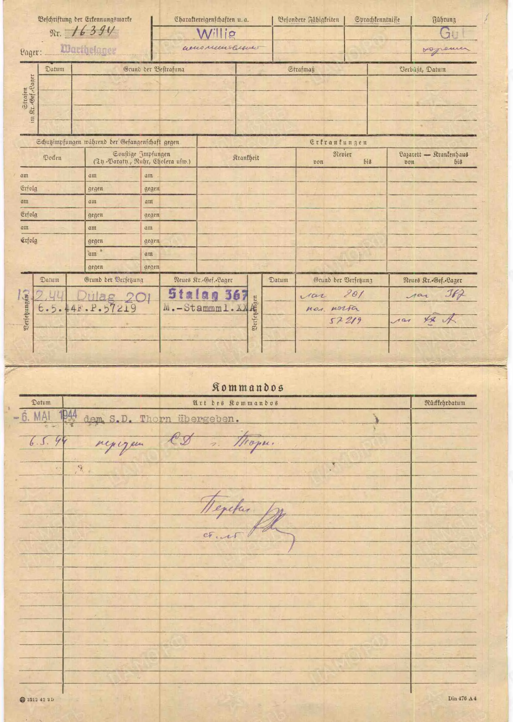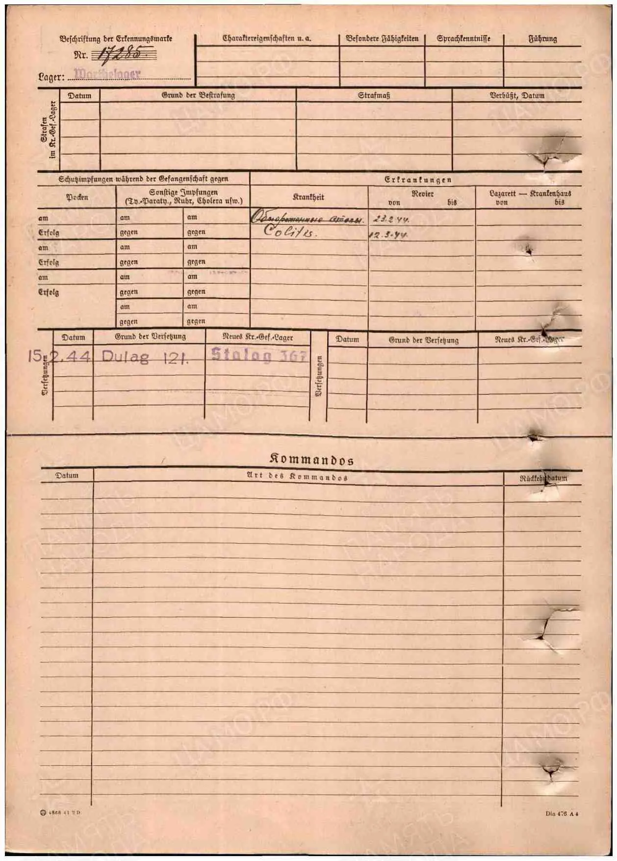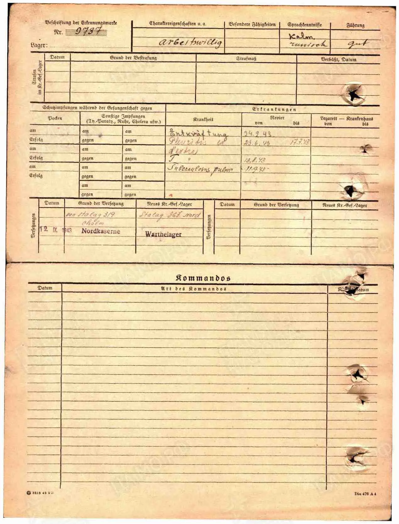 11.09.1943 в ревире Нордказерне поставлен диагноз "лëгочный туберкулëз", 12.09.1944 переведён в Вартелагерь