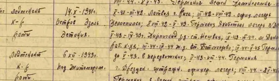 | Огромное спасибо!!! В ФСБ писала даже в Белоруссию.И по месту рождения во Владимир, и по месту призыва в Нарофоминск, во все архивы в России и Германии. Никаких сведений. Про московский военкомат отдельный разговор. Я когда туда пришла, мне упитанный гладенький военком начал выговаривать,что нечего лезть, как ваш отец вообще попал в плен, вроде как это такой позор, а вы еще какими то поисками занимаетесь. Сидите и помалкивайте. Радуйтесь, что на Колыму не отправили. И тут Остапа понесло. Я тихий воспитанный человек. Но тут я орала так, что прибежал дежурный.Именно такой начальник обороны некий генерал сбежал вместе с приближенными с Эзеля, оставив своих подчиненных..которые вели 100-дневную оборону. И которых осталось из гарнизона в 24000 бойцов всего 1500 человек. Эзель называют балтийским Брестом, а какой-то бездельник смеет марать память бойцов и командиров. Я очень много изучала этот вопрос, много тайн хранит остров. А что там пережили бойцы - нам не представить. В военном билете отца написано, что проходил действительную военную службу с сентября 1939 по август 1945.Последнее место службы 411 ОРХЗ сержант химик-разведчик командир отделения химиков -инструкторов. В ВОВ с июня 1941 по октябрь 1941 и с апреля 1945 по август 1945. Ни слова о плене. Ни слова о контузии, после которой у отца была в лагере первая ревматическая атака. Это я узнала от его племянника. Мне он ничего не хотел рассказывать.Отца возили его товарищи на работы в каменоломне на тачке и прятали. В каком лагере это было - неизвестно Возможно в одном из мелких лагерей на Эзеле, там есть каменоломни.Я читала воспоминания военнопленных из Саласпилса и даже нашла карточки нескольких отцовых сослуживцев. До самой смерти отец употреблял немецкие слова во сне . Я записала и спросила у коллеги учительницы немецкого перевод. Нахт цугундер - в карцер, эншисен -расстрелять,ауфинен - повесить, арбайтн -на работы.Простите за эмоциональность и сумбурность. При фильтрации видимо к отцу вопросов не было, если его сразу направили в действующую армию по специальности , вернув звание сержанта. И вопрос по освобождению остается открытым. Американцы или наши? В картах много нестыковок.Дата пленения откуда то 3.05., профессия маляр. Если вдруг появятся данные - очень прошу сообщить.Еще раз спасибо.