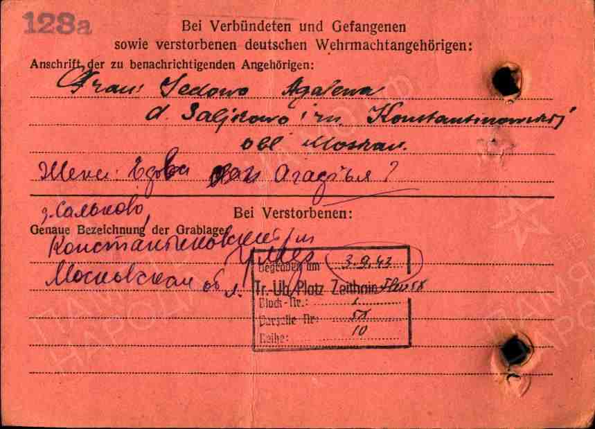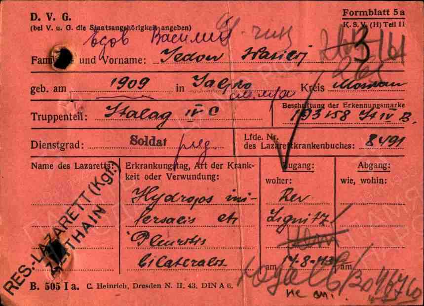 | Авиации СГВ ВОЕННОПЛЕННЫЕ - ШТАЛАГИ, ОФЛАГИ, КОНЦЛАГЕРЯ Лагеря IV военного округа Германии ( Dresden ) Stalag IVH (304) Zeithain Kgf.Lazarett Zeithain (Поиск военнопленных по лазарету Цайтхайн, ФРГ) |