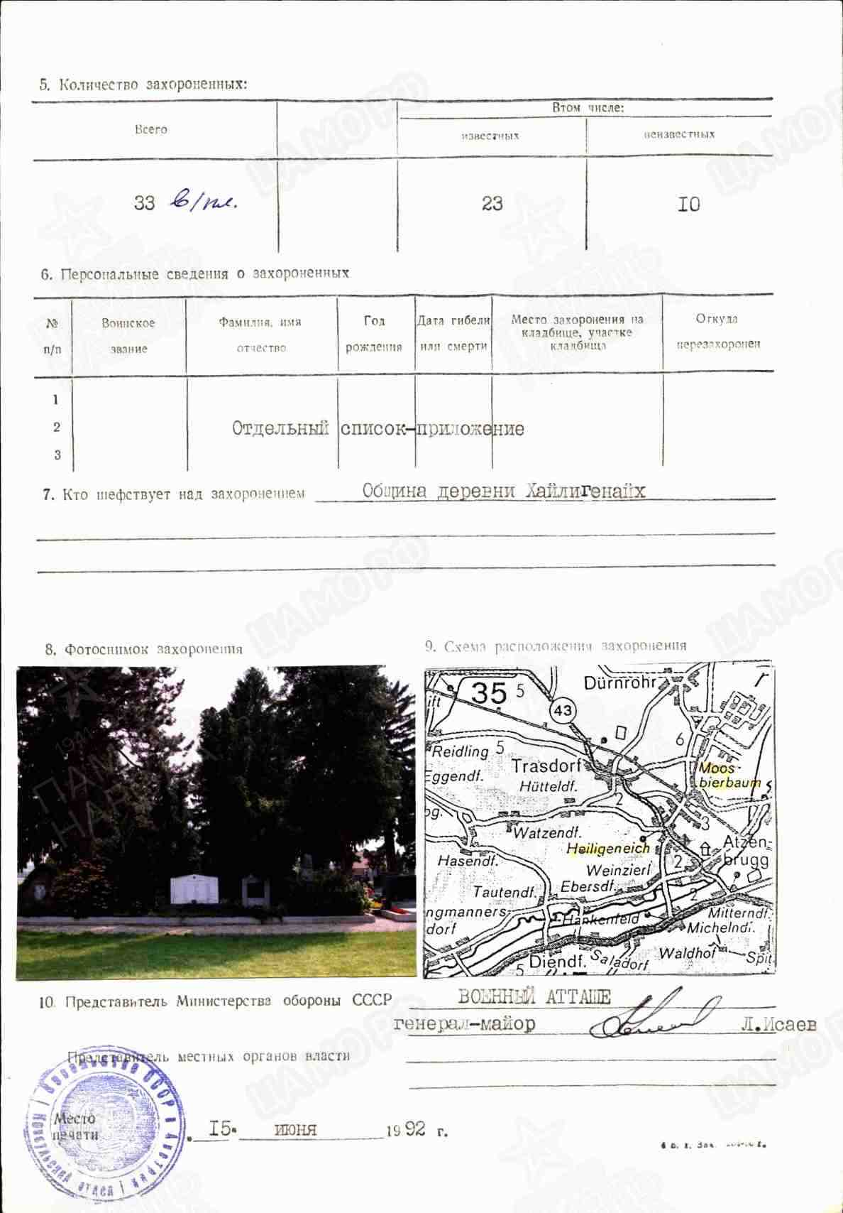 Место захоронения (без страны и региона) д. Хайлигенайх (Моосбирбаум)